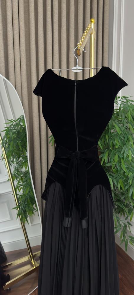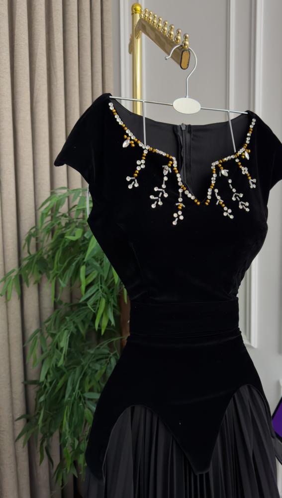 فستان سهره جوخ وشيفون كسرات تطريز يدوي