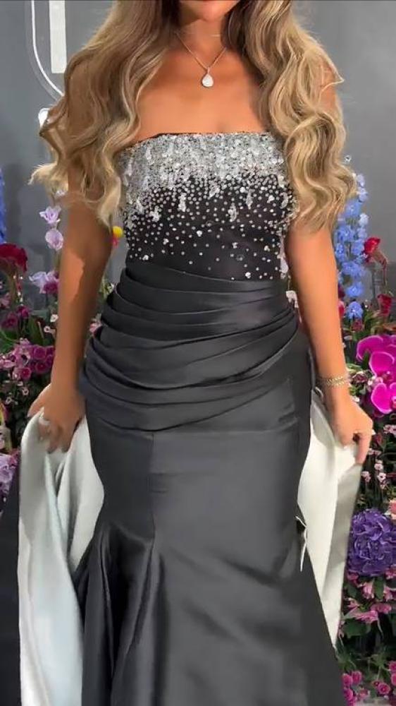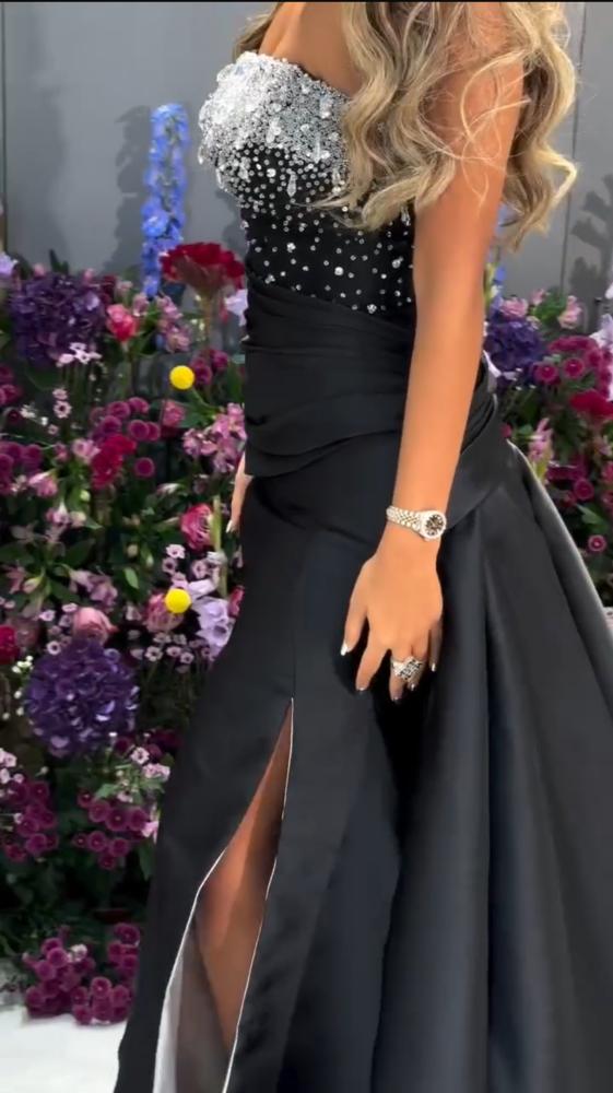 فستان سهره بذيل مزين بكرستال الخامه ميكادو الأصلي المقاسات بالارقام 1-2-3-4-5-6بالاحرفS-M-L-XL-XXL-XXXL-